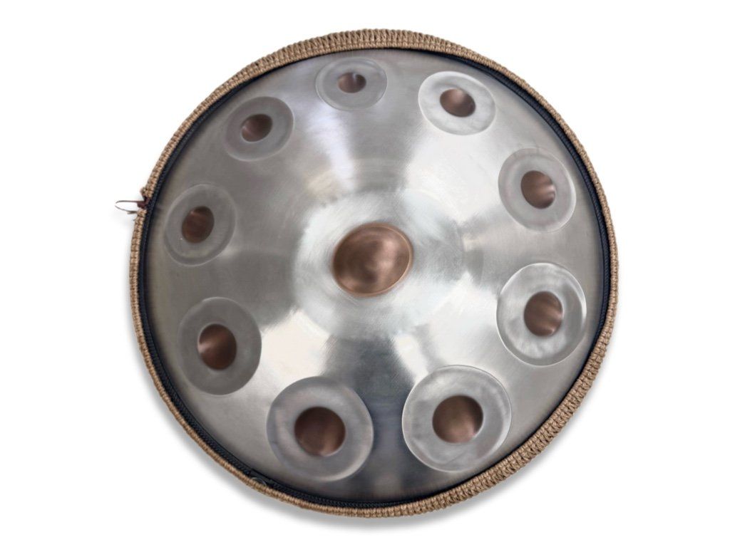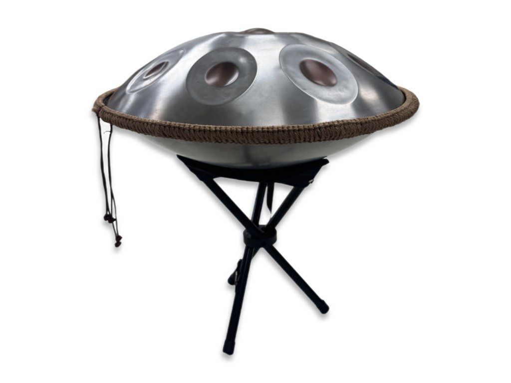 Tělo bubnu vyrábíme z tepelně zpracované karbonové oceli. Právě tento materiál dává nástroji ten typický éterický témbr s bohatými alikvóty, který levnější varianty nedokážou napodobit. Každé z deseti tónových polí ručně tvarují zkušení mistři, aby zvuk rezonoval čistě a dostatečně dlouho.